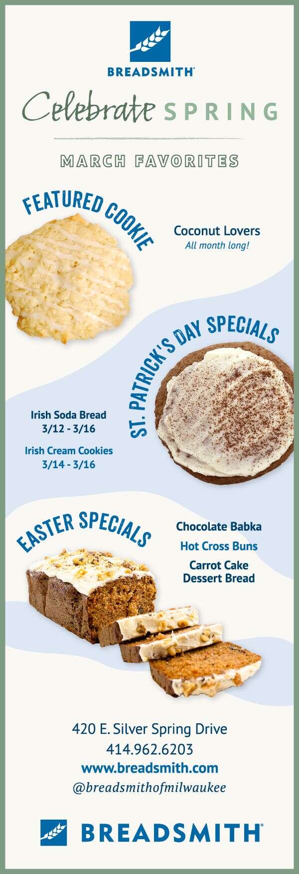 I began as the Graphic & Web Designer for Breadsmith Franchising, Inc. while finishing up my senior year at the University of Wisconsin – Milwaukee. Here I have learned many skills and what it’s like to work in a professional, corporate setting & communicate within a franchise system throughout the United States. From creating ads & promotions, running social media pages, taking over the product photography, maintaining and redesigning company websites & much more, the past 3+ years have been filled with defining my passion for creating. Consistency and remaining true to high quality is key to the Breadsmith brand and I have loved getting to refresh the look & feel from this small business that began in 1993.